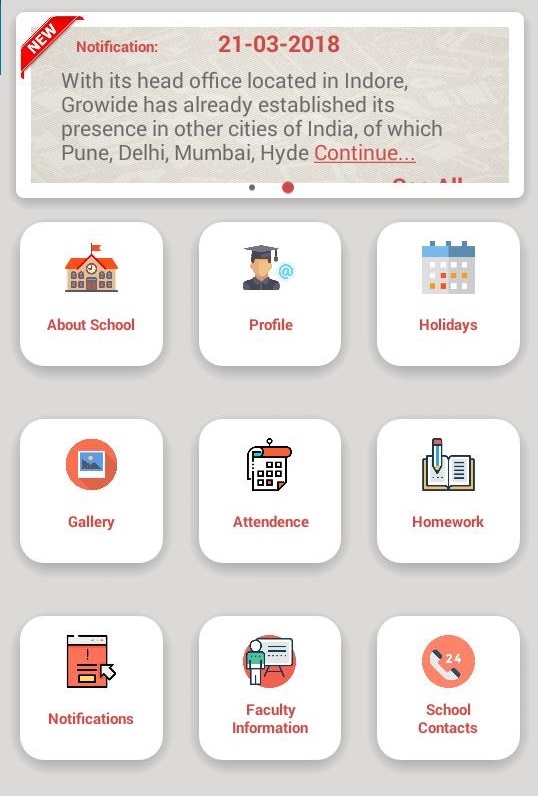 Android App is available for Students, Teachers, Admin and also for Bus tracking to reduce the efforts of institutes and increase their efficiency on multi levels. All of the App can be personalized in the school name also. Notable to mention is the inbuilt system of the 'Payment Gateway' to enhance the fees collection system.